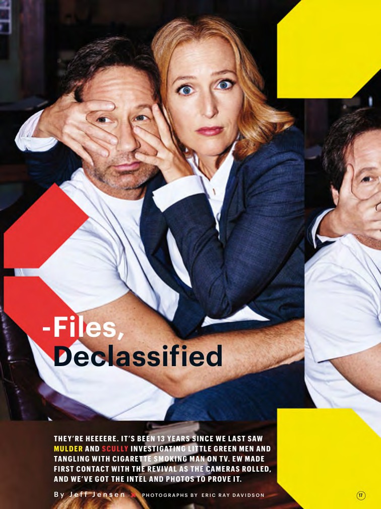 Cela faisait bien longtemps qu’on ne les avait pas vus ensemble en couverture d’un magazine. Déjà disponible en version en ligne, le prochain numéro d’Entertainment Weekly offre à Duchovny et Anderson, la première couverture US pour leur retour en janvier. Outre la couverture quir avira les shippers, à l’intérieur, le journaliste a pu approcher le Lire…