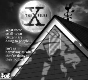 Dans les coulisses : – Assez curieusement la doc ayant servis aux scénaristes sur les tribus cannibales concernce les indiens Anasazi, cette tribu à laquelle Chris Carter fera références dans l’épisode suivant ainsi que dans le tout dernier de la série. Le nom de ”Chaco Chicken” a été inspiré en fait par le canyon de CHACO. Au Nouveau Mexique, où l’on pense qu’on vécut en partie ce peuple.