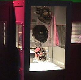 Postes informatiques – Je n’y ai pas passé beaucoup de temps, car je passe généralement toute la journée sur l’ordinateur ! Différents types de terminaux étaient installés. Une rangée proposait un aperçu du jeu interactif X-Files (si vous ne l’avez pas vu, allez-y, il est vraiment génial et contient des images inédites de Mulder et Scully). Un autre type de terminal présentait le logiciel « Accès illimité ». D’autres rangées encore étaient équipées de caméras permettant de se faire prendre en photo et de la publier sur « son » site internet. Un quatrième type était le site internet de l’Expo (qui est en fait le site officiel X-Files avec quelques sections supplémentaires). Je l’ai exploré une minute ou deux, car il contenait des choses qu’on ne trouvait pas sur internet. Le plus intéressant était une série de nouvelles photos du film X-Files que je n’avais jamais vues. Certaines étaient vraiment superbes !